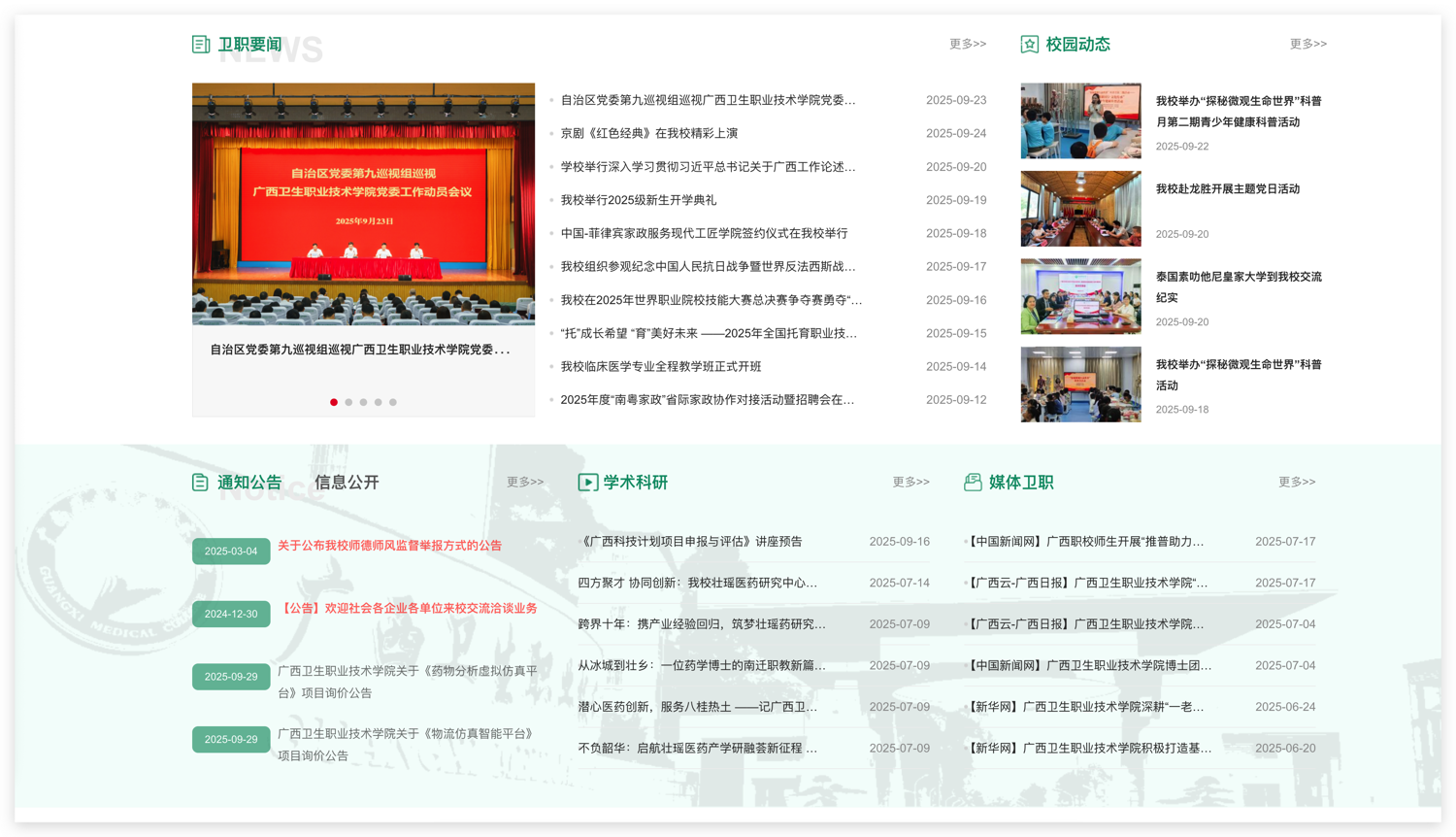通过这些设计措施,广西卫生职业技术学院的网站群在视觉美感、品牌识别和交互便捷性上取得了良好的平衡。