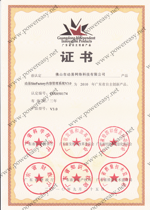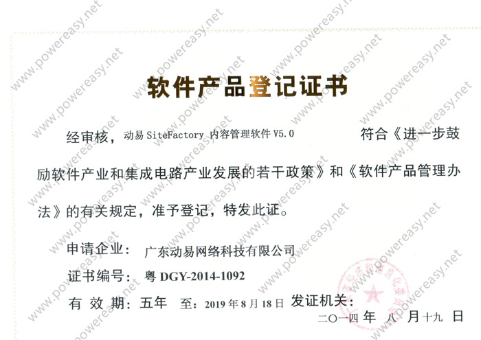 软件产品登记—动易SiteFactory内容管理软件V5.0