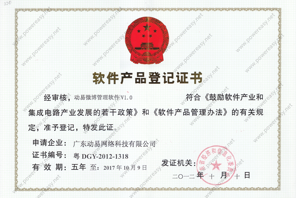 软件产品登记-动易微博管理软件V1.0