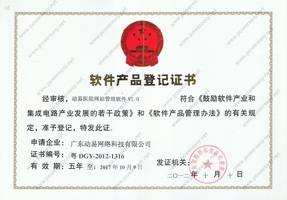 软件产品登记-动易医院网站管理软件V1.0