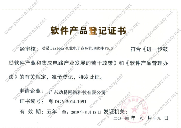 软件产品登记—动易BizIdea企业电子商务管理软件V5.0
