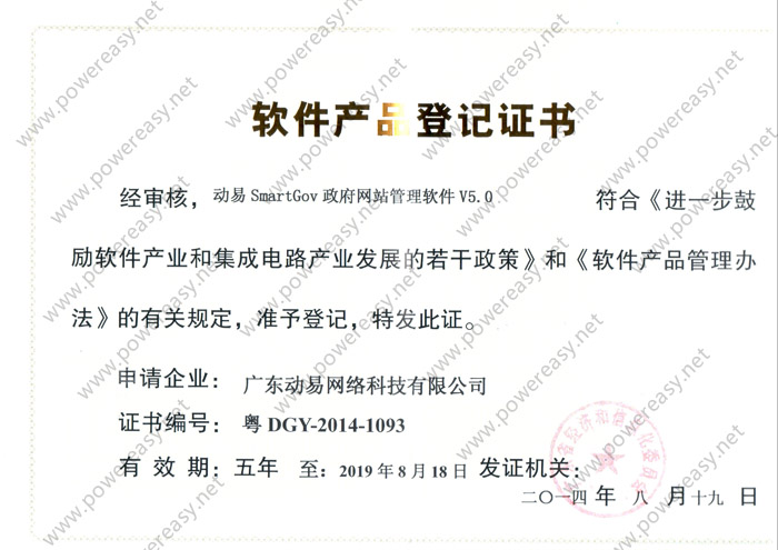 软件产品登记—动易SmartGov政府网站管理软件V5.0