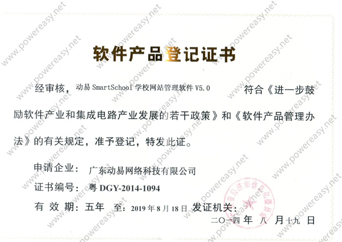 软件产品登记—动易SmartSchool学校网站管理软件V5.0