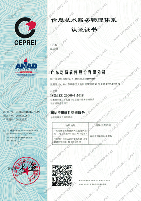 ISO 20000 信息技术服务管理体系证书