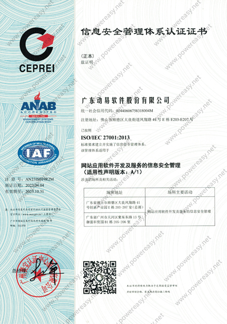 ISO 27001 信息安全管理体系证书