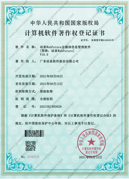 软件著作权-动易WebFuture全媒体信息管理软件V10.0