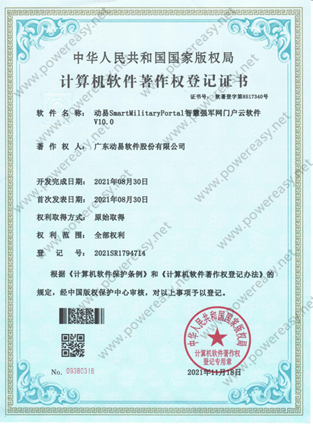软件著作权-动易SmartMilitaryPortal智慧强军网门户云软件V10.0