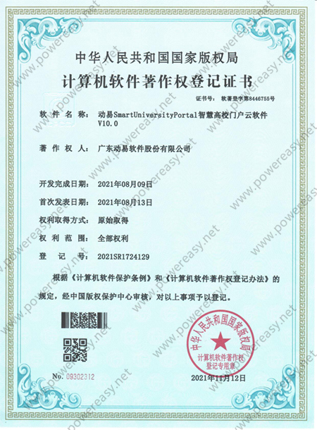 软件著作权-动易SmartUniversityPortal智慧高校门户云软件 V10.0