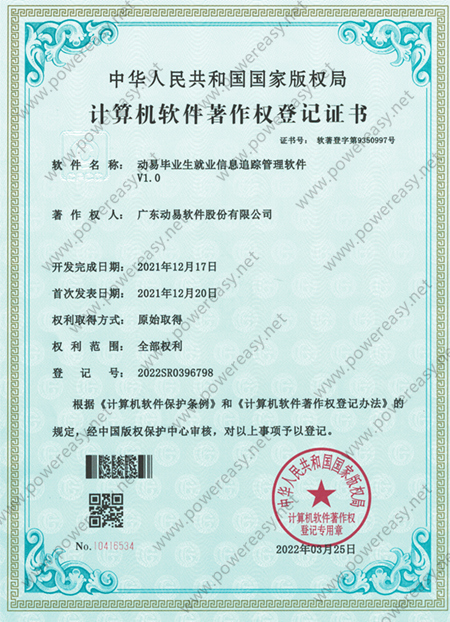 软件著作权-动易毕业生就业信息追踪管理软件V1.0