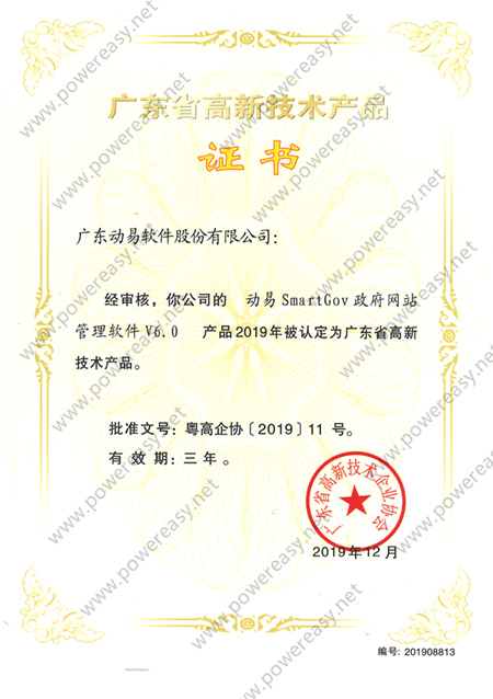 2019年高新技术产品—动易SmartGov政府网站管理软件V6.0