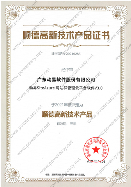 2021高新技术产品证书—动易SiteAzure 网站群管理云平台软件V3.0