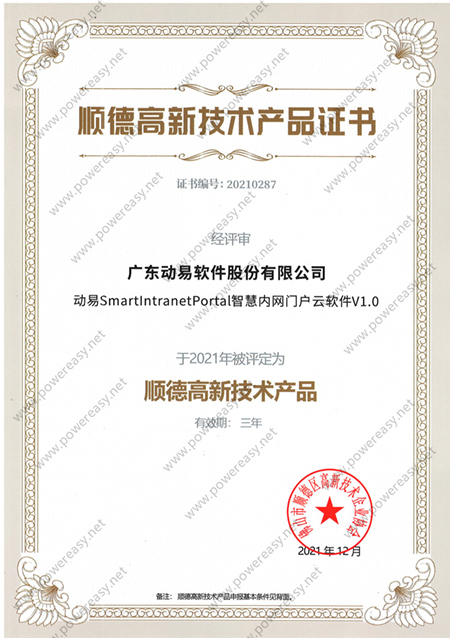 2021高新技术产品-动易SmartIntranetPortal 智慧内网门户云软件V1.0