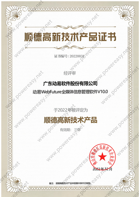 2022年高新技术产品—动易WebFuture全媒体信息管理软件V10.0