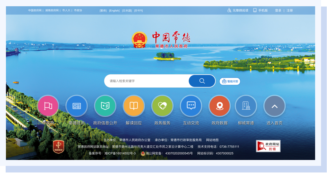 常德政府门户网站是由常德市人民政府主办,常德市人民政府办公室、常德市行政审批服务局承办,是常德市委、市政府对外发布政务信息、对相关政策文件进行权威解读、实现政民互动、提供网上办事服务的平台,也是宣传展示常德形象的窗口。