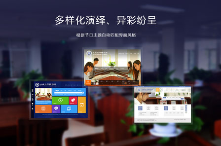 大连大学图书馆网站采用响应式布局设计,借助动易多屏优化技术,可以充分实现响应式布局、适配移动设备,无论用户正在使用 PC 、平板电脑或者手机,无论是全屏显示还是非全屏的情况,无论屏幕是横向还是竖向,页面都能够实现自动调整以适应不同设备。