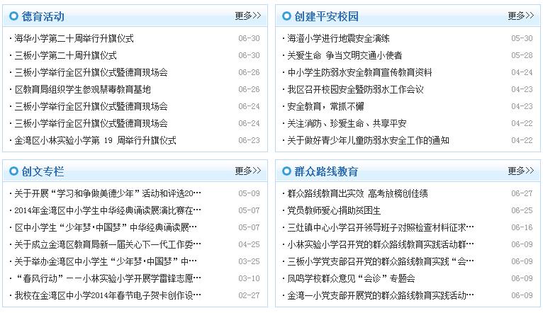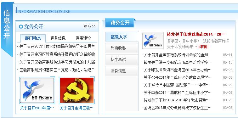 珠海市金湾区教育局2013年与动易进行项目合作,建设珠海市金湾区教育信息网。金湾区教育局以资源整合、信息共享为基础,选用动易SiteGroup站群管理系统和动易Smartschool数字化校园管理系统等动易软件建立以区教育局网站为中心主站,以所辖20所学校网站为子网站、以社会公众为服务对象的金湾区教育信息网站群系统。通过统一规划、统一部署、统一管理,基于对分散的信息资源进行有效的整合,实现资源互通共享,避免信息孤岛,加快教育局对公众实现“一站式”服务的步伐,提高网站的应用水平。
