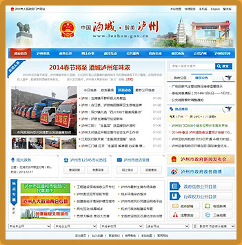 泸州市人民政府门户网站一直使用动易系统,2013年泸州市人民政府与动易再次进行项目合作,对泸州市人民政府门户网站进行改版。
