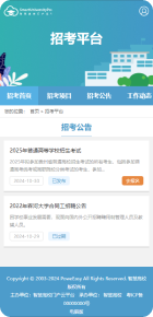 招生考试项目的操作支持:修改、删除、设为当前招生考试项目(始终只有一个项目为当前项目)、发布/取消发布/设为公示中/设为过期。发布后前台的招生考试模块页面自动调用显示招生考试公告。