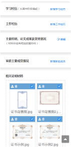 报名前必须要注册用户并登录。报名表填写采用仿真界面,即与纸质报名表的样式接近。支持上传相关证明材料(支持图片、视频、PDF、压缩文件等格式)。