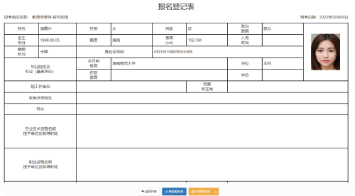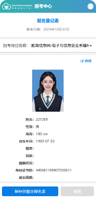支持考生查看自己的报名表。报名表的上方,以进度条的方式显示报名表的当前状态、处理过程和结果。