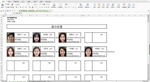 座位表又分为监考老师用和张贴用两种格式:监考老师用的座位表的效果与座位安排界面类似,显示了考生的照片、姓名、准考证号、报考班级、身份证号码,以便监考老师核对考生信息,防止有人替考;张贴用的则只显示考生姓名和准考证号,并可选择是否显示报考班级,以防止泄露考生的个人隐私。