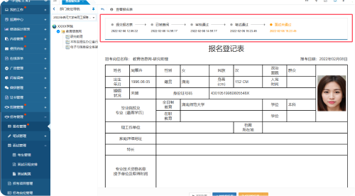 支持对报名表已通过审核(进入笔试流程)的考生做专门的笔试管理。