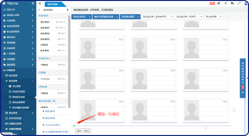 考点和考场管理不需要专门的菜单,直接在“笔试座位安排”的考场导航中栏进行管理。
