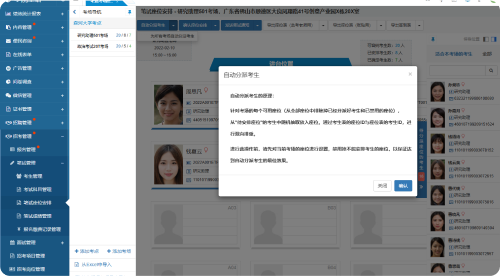 座位布置好了以后,如果接下来为每个座位手动分派考生,那其实并没有减少多少工作量,所以我们设计了“自动分派考生”功能。考试组织者可以对当前考场的座位自动分派考生,也可以自动为所有考场自动分派考生,然后再根据需要进行局部调整即可(见下面的的座位安排的相关功能操作)。