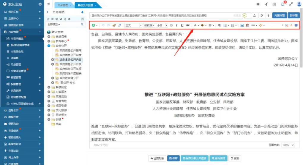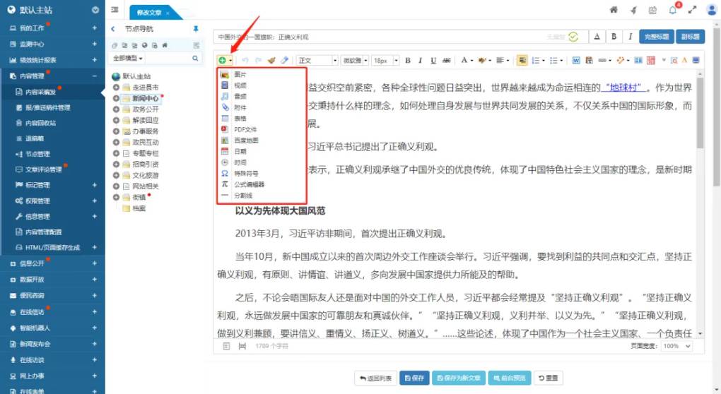 在线 HTML 编辑器是内容管理系统的最核心功能之一,它采用与 Word 类似的可视化编辑方式,实现对文章内容的“所见即所得”的在线编辑效果。