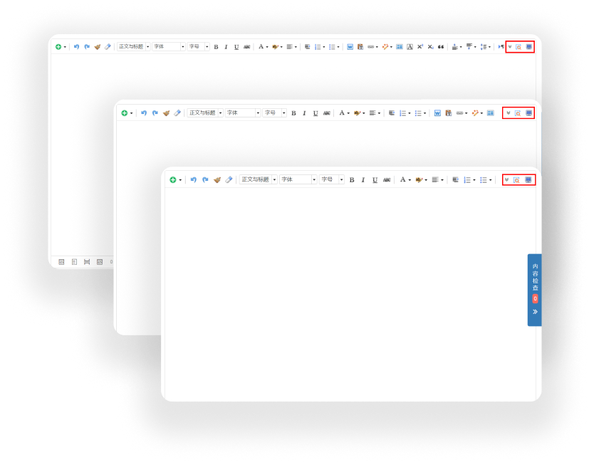 系统支持错别字和敏感词的检查功能。当发现错别字或者敏感字时,点击结果时会自动定位到编辑器中的具体位置,并将其标注出来。编辑人员可以手动确认,确认是错别字和敏感字时可点击“更正”按钮由系统自动修正这些错误。