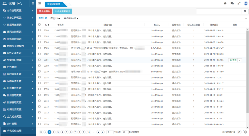 短信发送记录管理