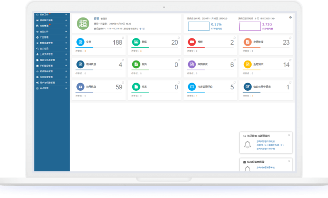 此外,右下角设有冒泡提示,实时提醒用户各模块的待处理任务和待审核信息,点击提示即可快速进入相应模块进行处理。