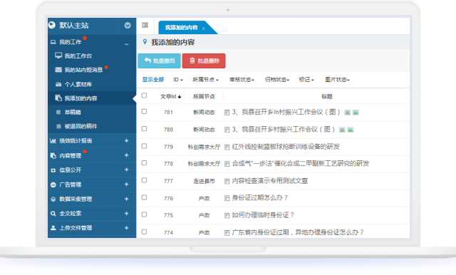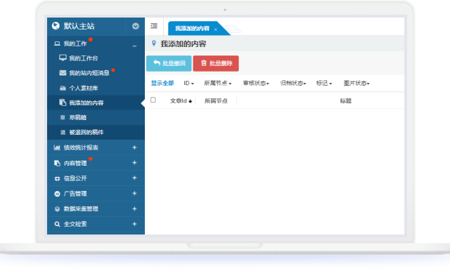 支持按内容模型对被退回稿件进行管理,每种内容模型均精心设计了与之适配的列表页与查看页,以提升管理效率与体验。